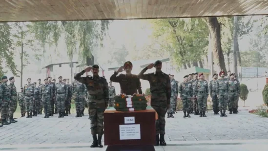 In a video shared by the Army’s Chinar Corps Unit on Twitter, officers are seen laying the wreath and then saluting the canine.